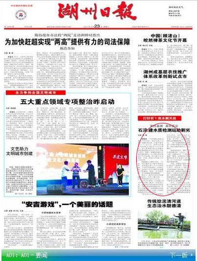 2017年5月23日 A01:A01-要闻 稿件来源:湖州日报 记者:陈栋