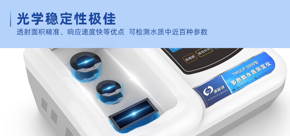 多参数水质测定仪利用单一波长的光通过待测样品,根据朗伯-比尔定律,通过测量吸光度值进而计算样品所含某物质的浓度值。部分测量参数如PH、电导率、溶解氧、温度等用 (电化学)电极法测量。