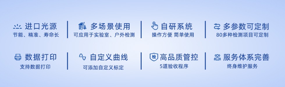 测量参数 | CODMn、铜、铁、镍、六价铬、磷酸盐、亚硝酸盐等35个参数,客户可根据需要定制所测参数 |